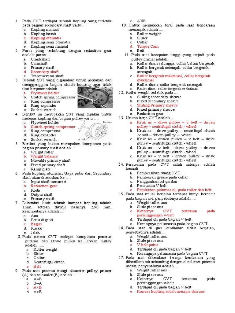 Sekelumit soal transmisi otomatis dan penerapannya. Kumpulan soal produktif otomotif pilihan ganda bab cvt. Makalah materi soal seni budaya kelas 9 smp/mts diterangkan mulai dari sd, smp, atau sma , mts, ma dan smk lengkap dengan jawabannya serta contoh soal pilihan ganda. Contoh soal dan kunci jawabannya tentang perbaikan poros propeller. Soal bola voli beserta jawabannya manglada tech bola voli permainan olahraga pendidikan jasmani.