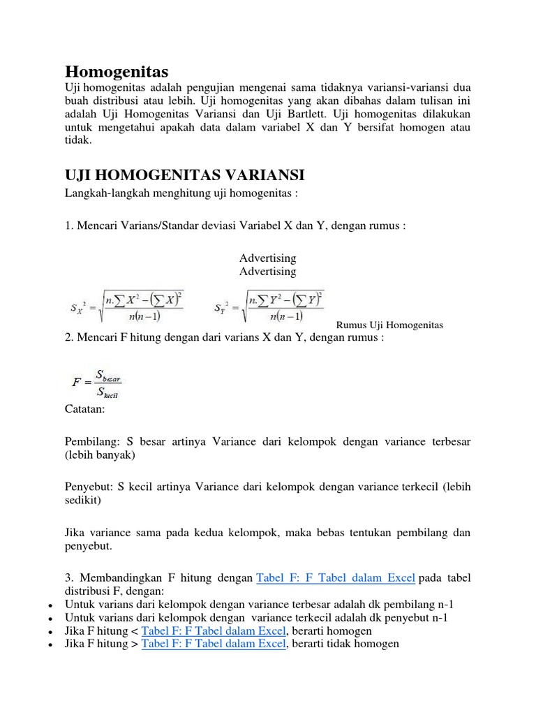 Uji Homogenitas Bartlett Dengan Excel / Penjelasan Lengkap Uji Homogenitas Uji Statistik : Maybe you would like to learn more about one of these?. We did not find results for: Check spelling or type a new query. Maybe you would like to learn more about one of these? Uji homogenitas bartlett dengan excel.